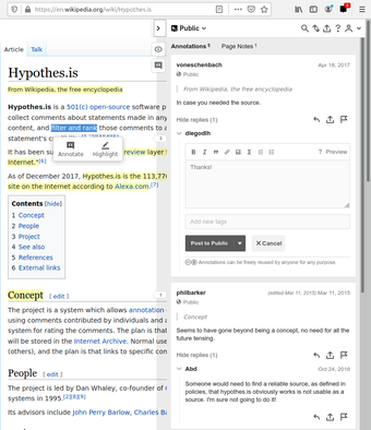 Firefoxの非公式Hypothesis拡張は、ユーザーがウェブページやPDF文書を共同で注釈、ハイライト、タグ付けできるようにすることで、ウェブブラウジングを強化します。この無料ツールは、ディスカッション、ソーシャルリーディング、整理された研究を可能にし、学生、研究者、洞察を共有したい人々に最適です。ユーザーは自分のHypothesisアカウントにログインして、公共およびプライベートの注釈を作成およびアクセスでき、個人的なメモとソーシャルインタラクションのシームレスな統合を促進します。